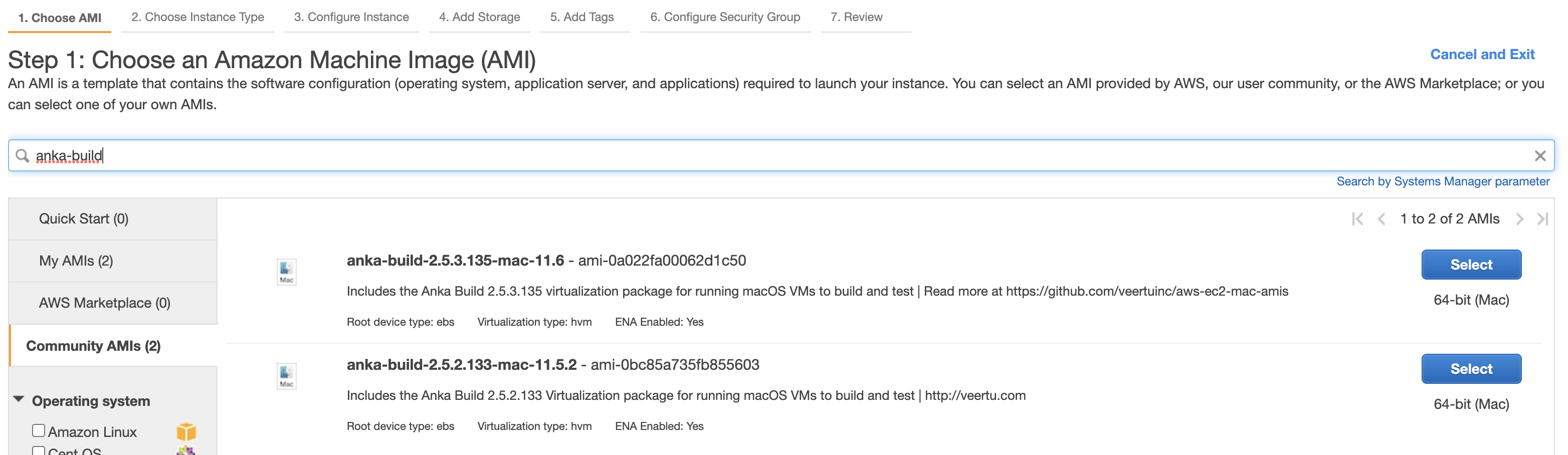 There are three AMI options available for you to use: