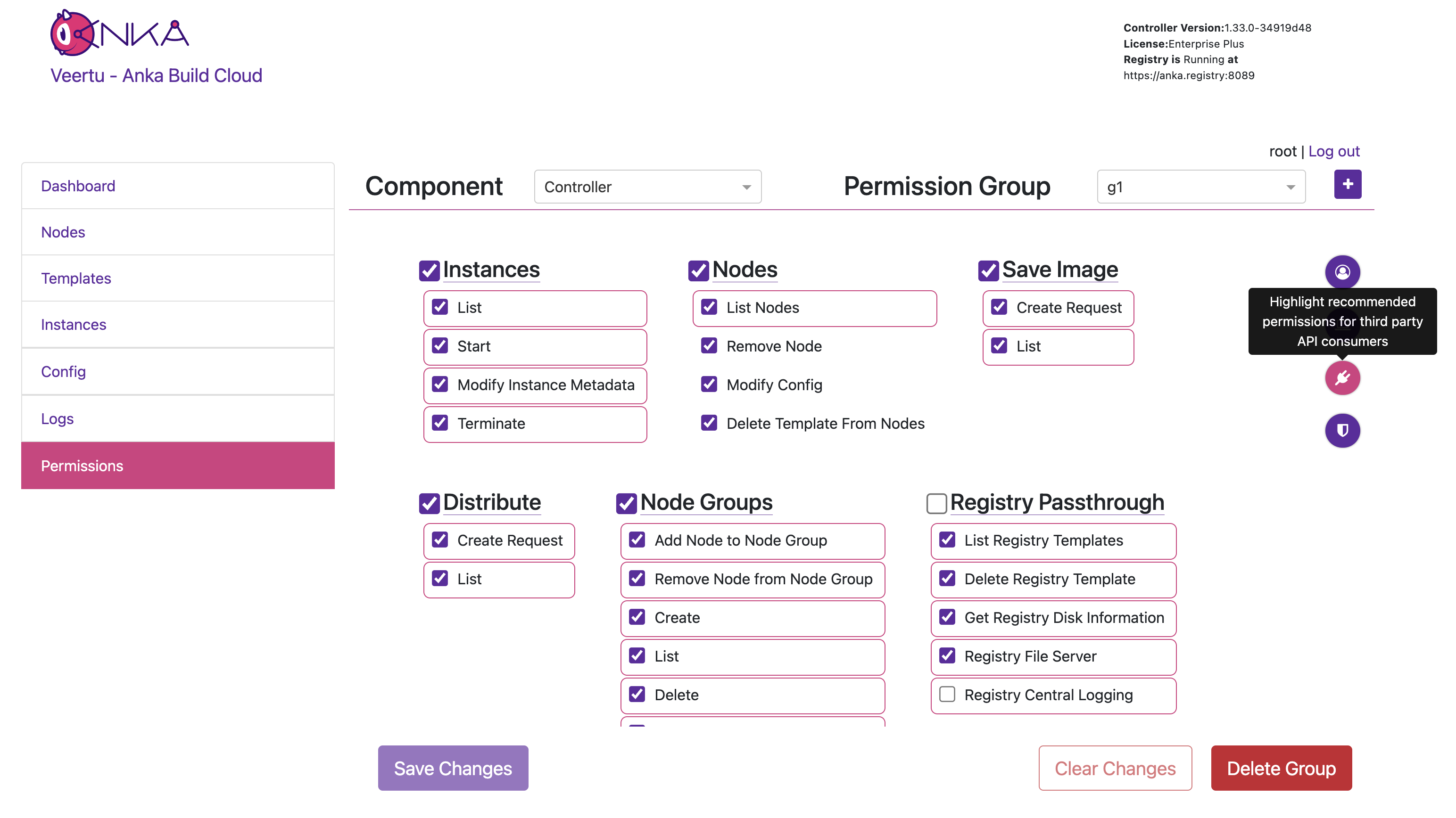 location on the Controller, visible from the dashboard when logged in to a user with appropriate permissions to manage. There are also helper button on the right which will highlight the recommended permissions to add for the specific use-case you have (Node communication, API clients, etc).